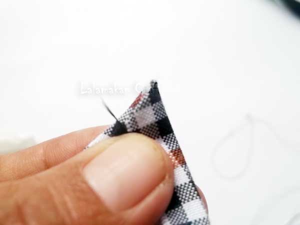 Lalu jahit tangan ....sekeliling sisi segitiga...